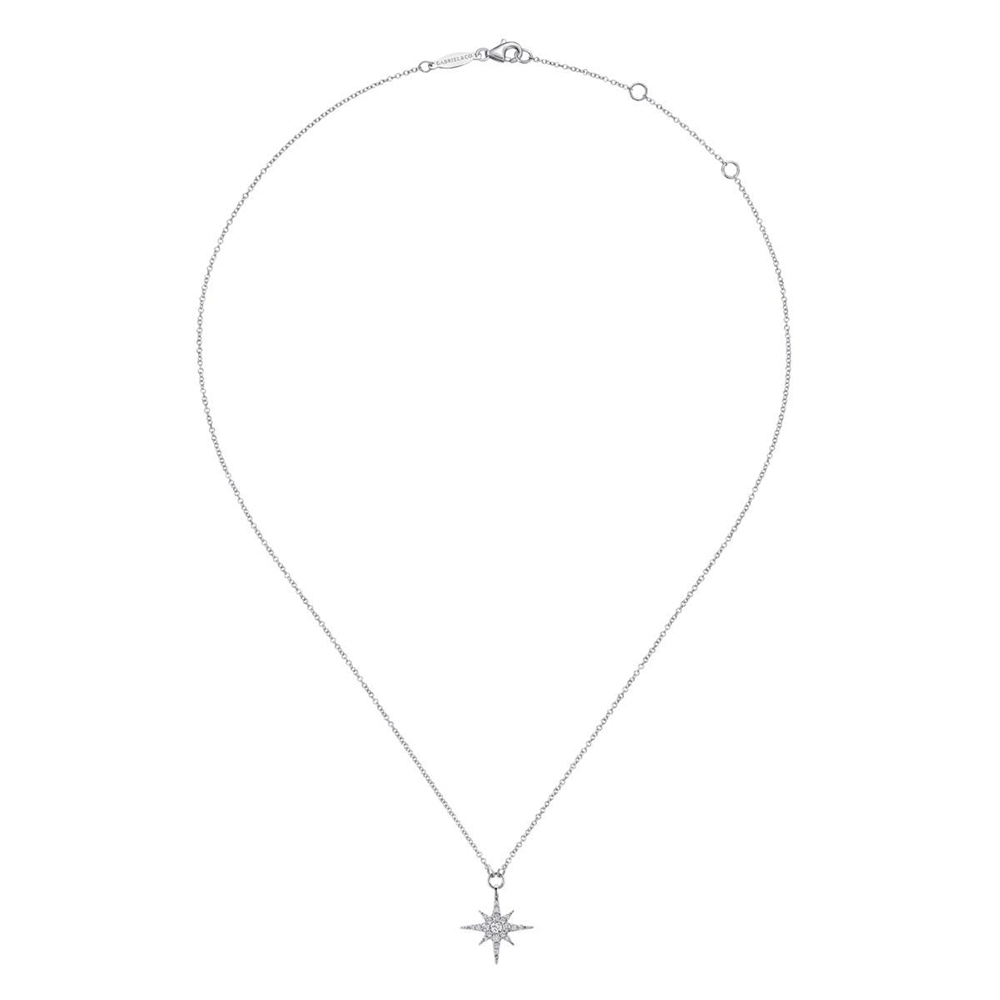 Gabriel & Co, Kaslique , White Gold Diamond Starburst Pendant Necklace, (SKU: NK4847W45JJ)
